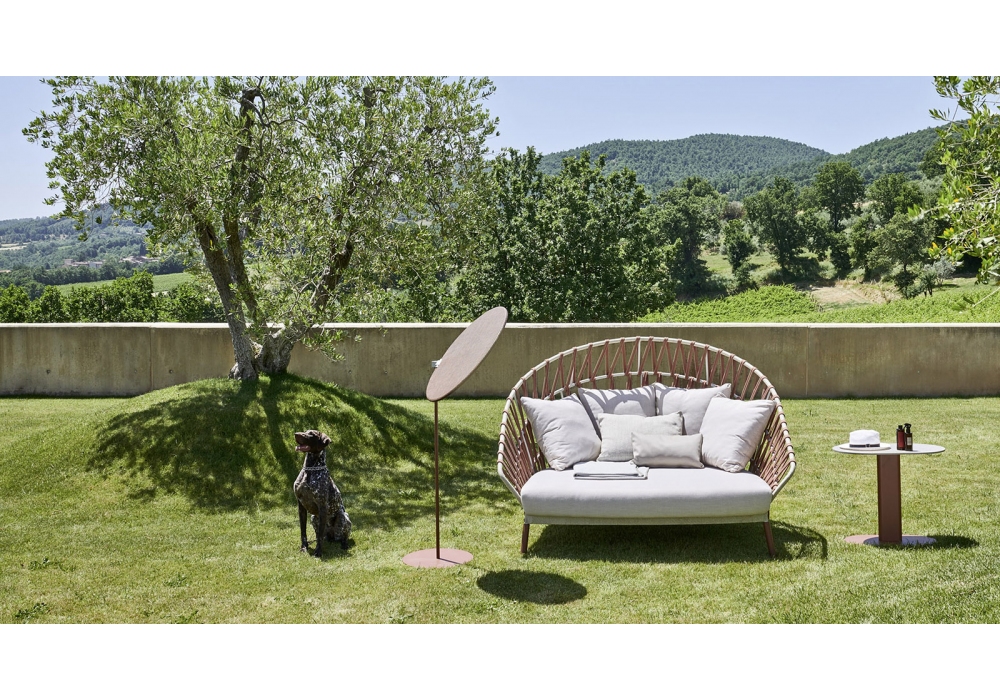 Emma Cross diseñada por Monica Armani para Varaschin es una cama de día con base de aluminio pintado en polvo. Estructura en aluminio pintado en polvo tejido con banda en tejido acrílico. Tapizado de asiento en tejido y acolchado con goma Dryfeel para uso exterior. Disponible en diferentes acabados.
