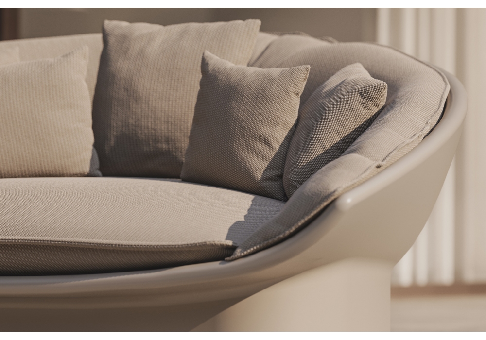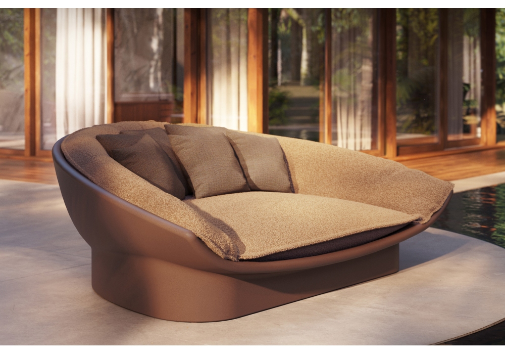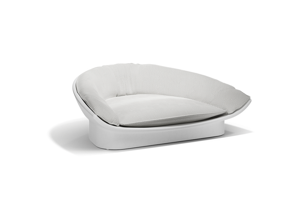 Luna diseñado por Ramón Esteve para Vondom es un daybed fabricado en resina de polietileno por moldeo rotacional 100% reciclable y cojines con espuma de poliuretano de alta densidad y relleno de fibra sintética. Revestimiento de tela. Disponible en diferentes acabados.