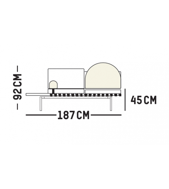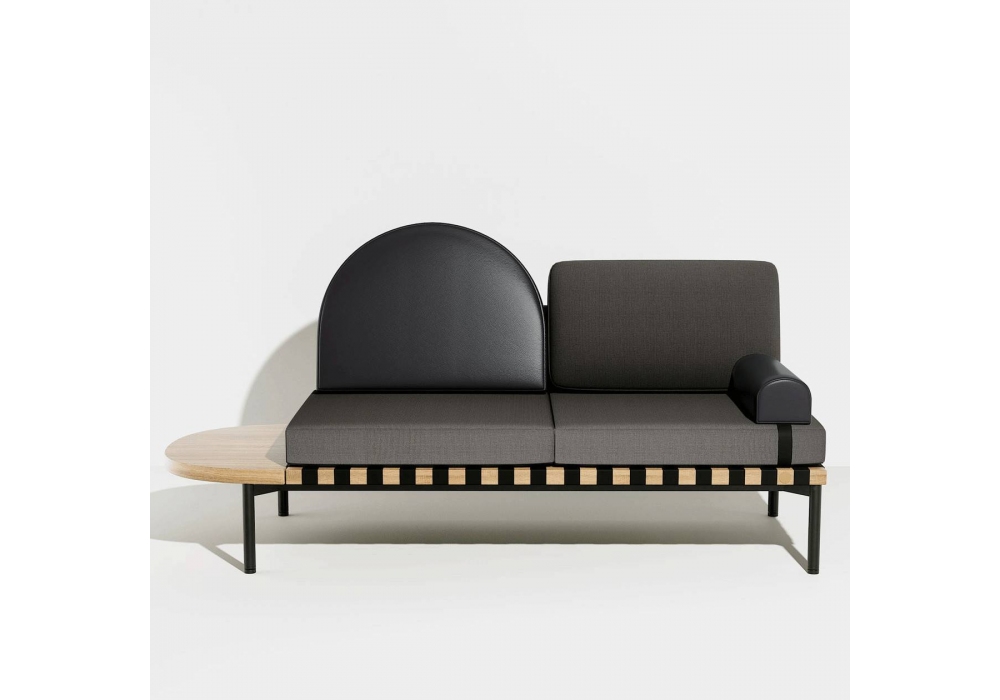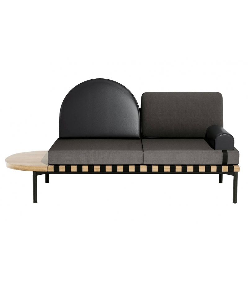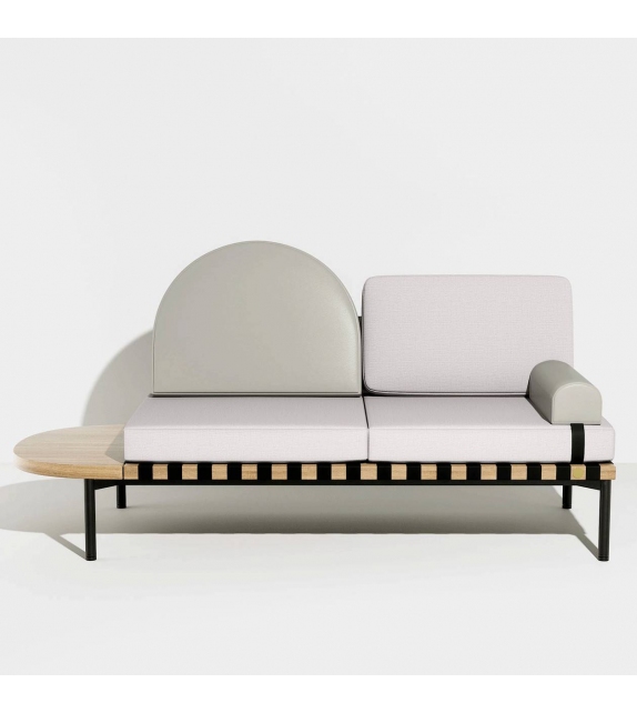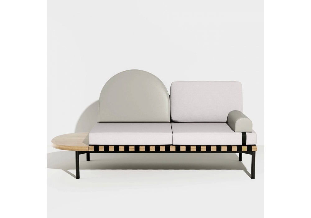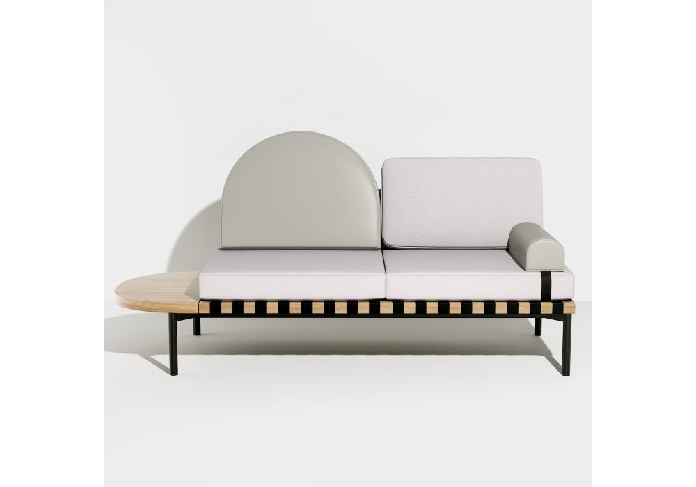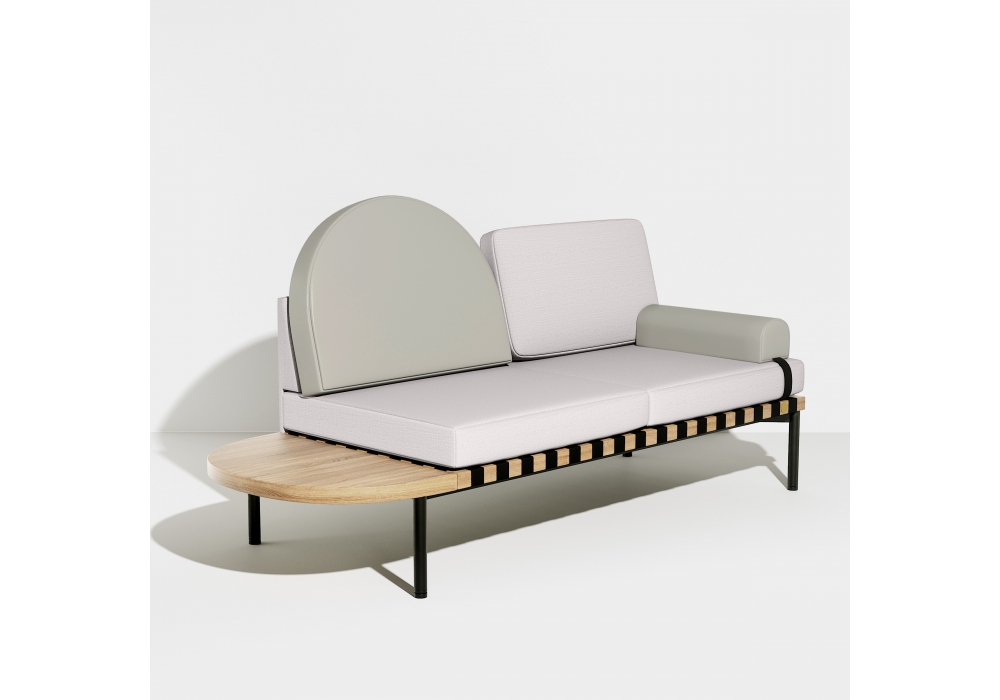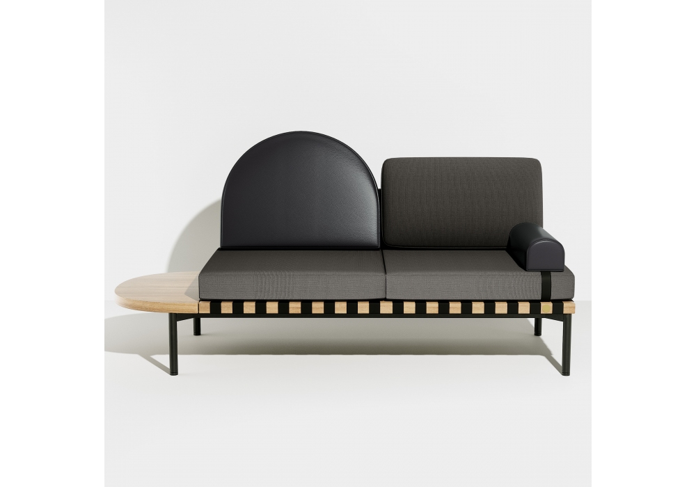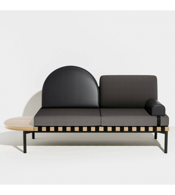 Grid diseñado por Pool para Petite Friture es un daybed realizado con estructura de madera, base de acero y revestimiento en diferentes tipos de tejido. Cojín redondo tapizado en tela o piel.