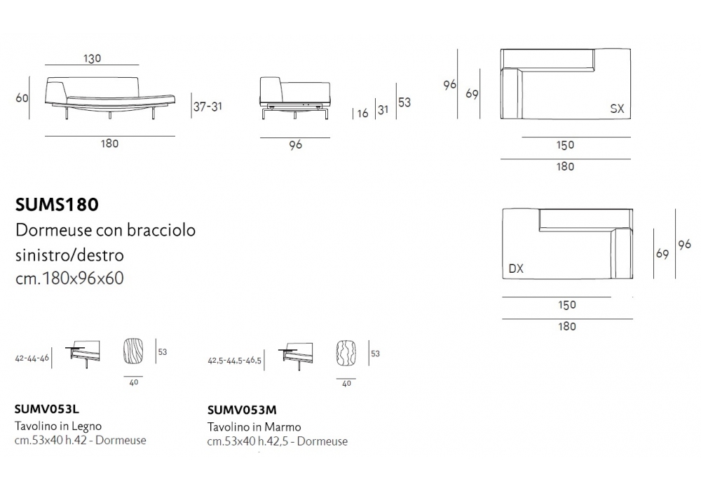Sumo Curved Living Divani Dormeuse con Mesa Auxiliar