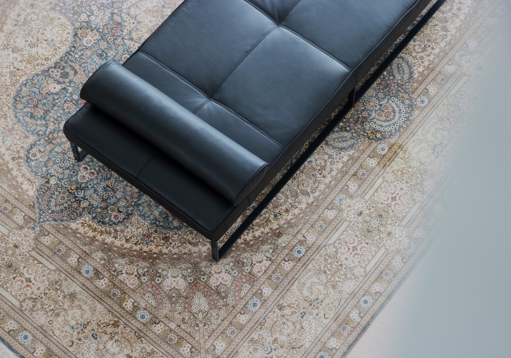 Monaco diseñado por Broberg & Ridderstråle para Röshults es un daybed con estructura en acero inoxidable y tapizado en piel.