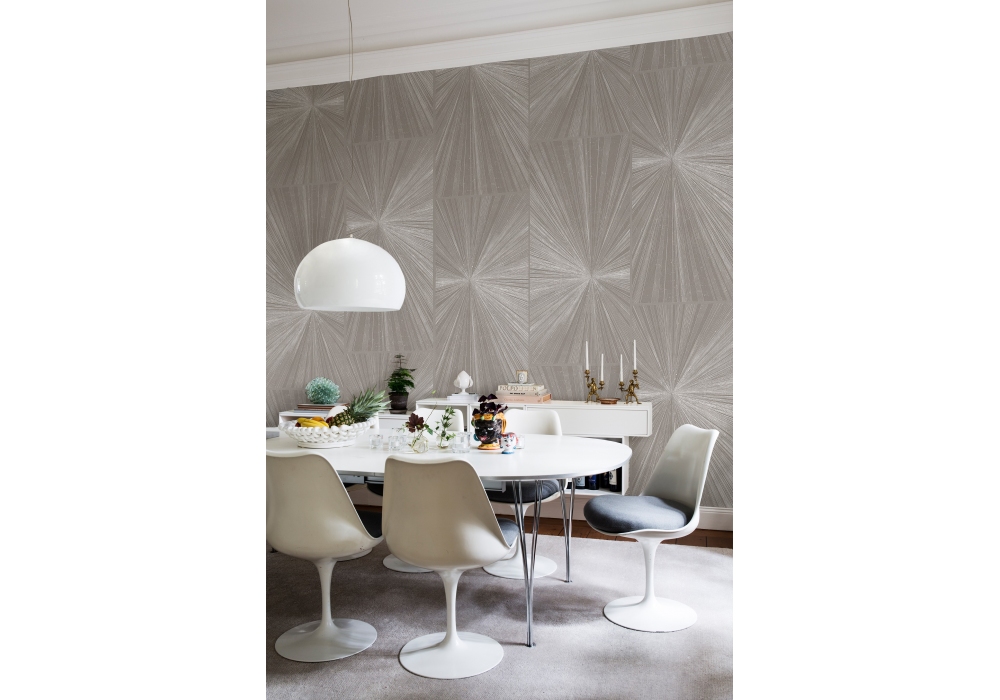 Flash Lines TS diseñado y producido por Wall & Decò es un papel pintado no tejido impreso digitalmente. Tejido no tejido revestido a base de fibras de celulosa y fibras de poliéster, tintas al agua y pigmentos orgánicos. Disponible en diferentes acabados.