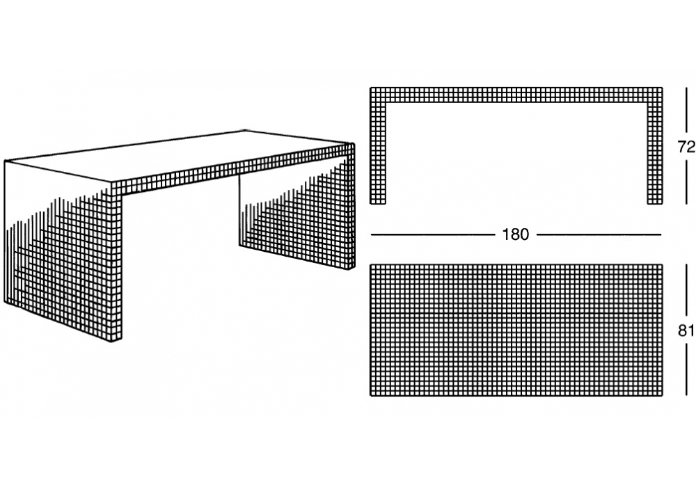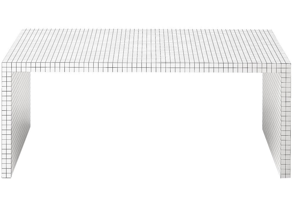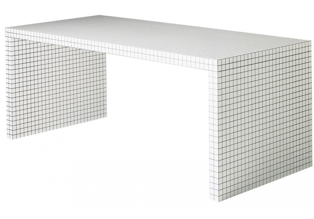 2830 Quaderna diseñado por Superstudio para Zanotta es un escritorio con estructura de madera enchapada aplacada con laminado Print, color blanco, serigrafiado en cuadritos negros de 3 cm.