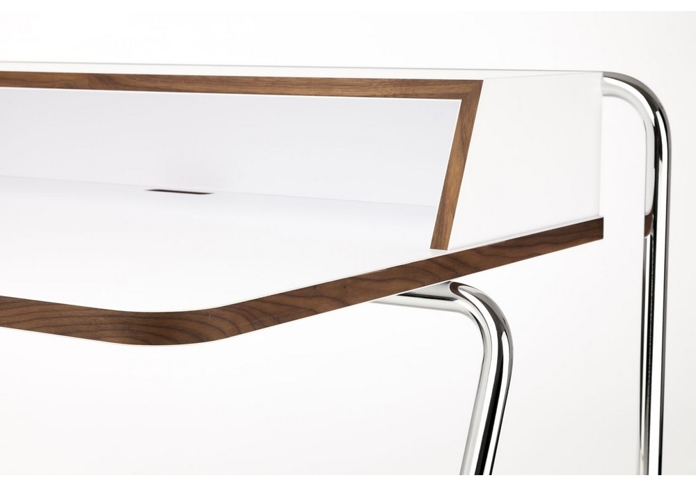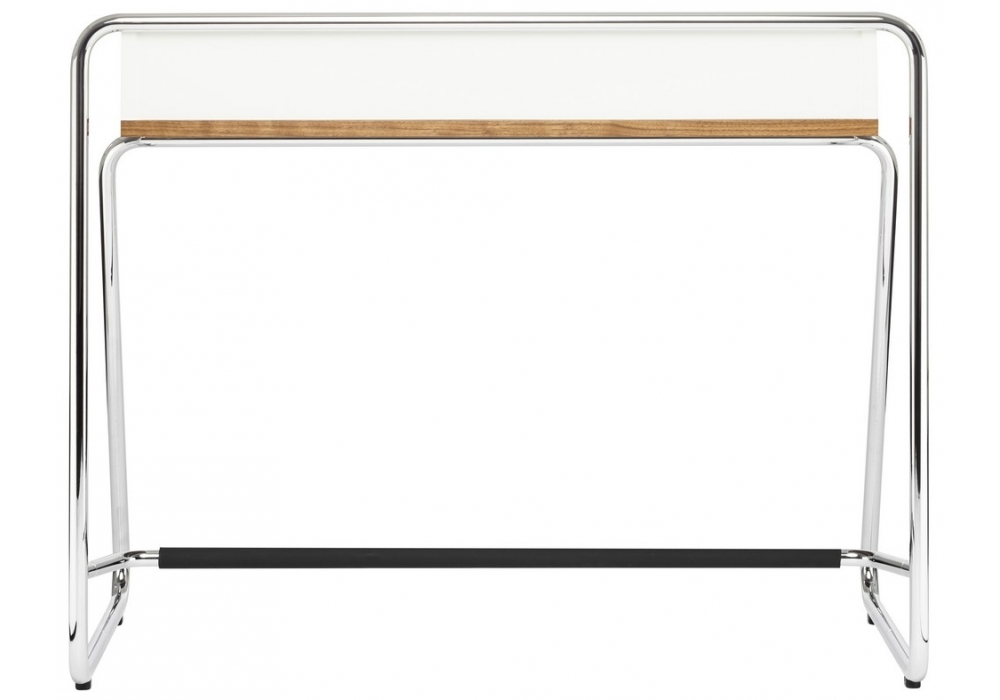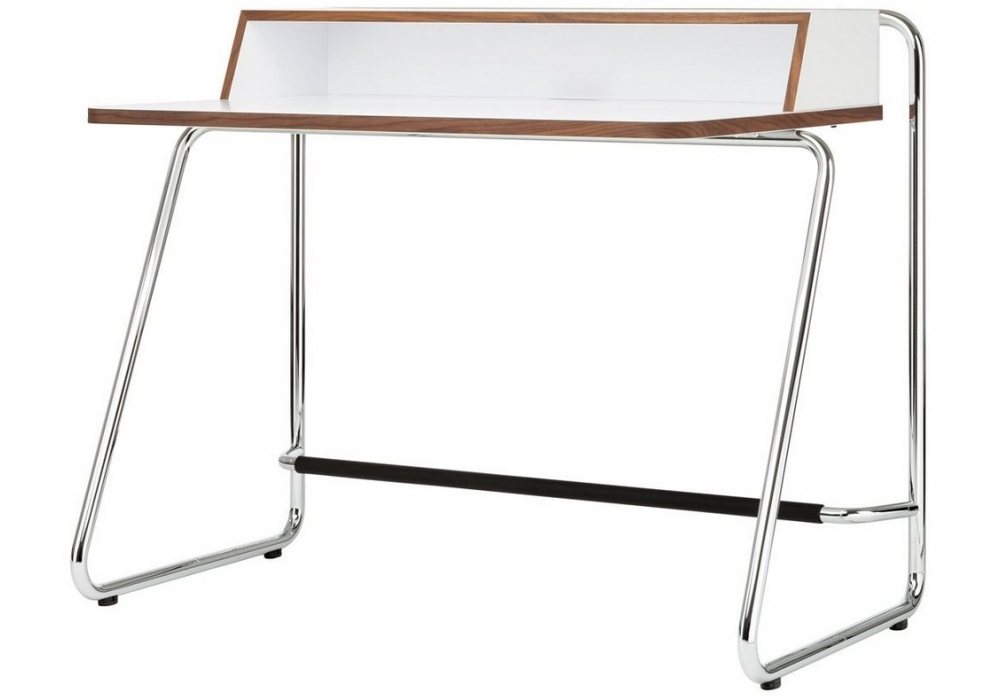 S 1200 diseñado por Randolf Schott para Thonet es un escritorio con estructura de acero tubular cromado y pies de plástico. Tapa de MDF con chapa de madera real o ThonetDur. Torreta y tapa disponibles en diferentes acabados.