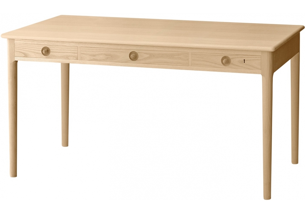 PP305, signed by Hans J. Wegner for PP Møbler, is a wooden desk with a lock in the right drawer. This is classic Danish craftsmanship offering simple and modest functionality in solid wood. As a counter experiment, this desk pays homage to pure, traditional and exquisite woodwork. Although the thorough and dedicated attention of a skilled cabinetmaker is required in executing the work on this desk, the job can be done with quite simple and trivial tools. This is not a search for something new or extraordinary. This is a result of the simple and strong will to create something genuine and honest.