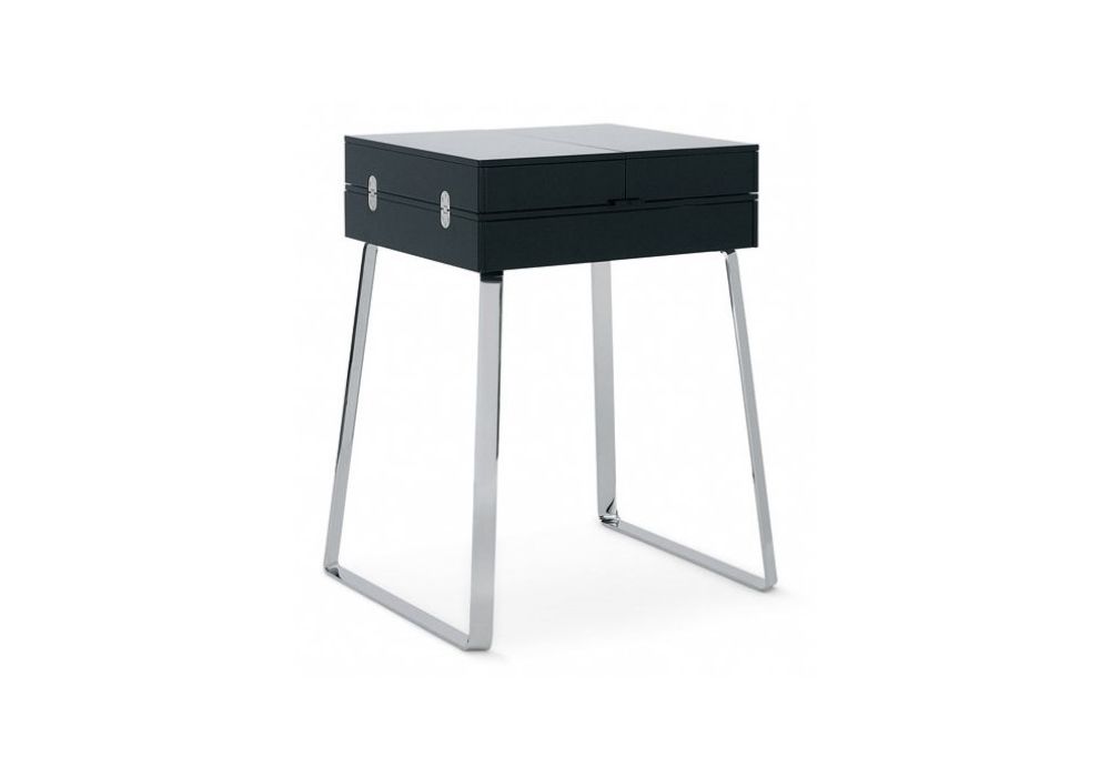 Zelos diseñado por Christoph Böninger para ClassiCon es un hermoso secreter plegable con compartimentos laterales y un cajón. División adicional con pasador para cables. Superficie de trabajo de cuero espaldar. Cuerpo en laca de brillo intenso o chapado en madera auténtica. Estructura de acero cromado plano. Disponible en diferentes acabados.