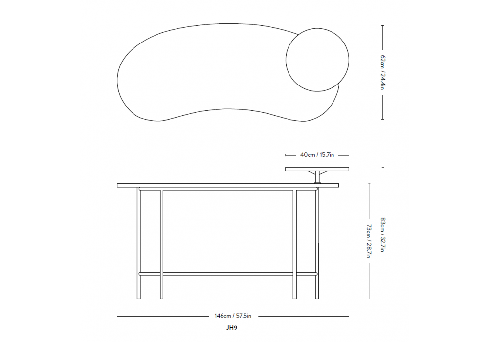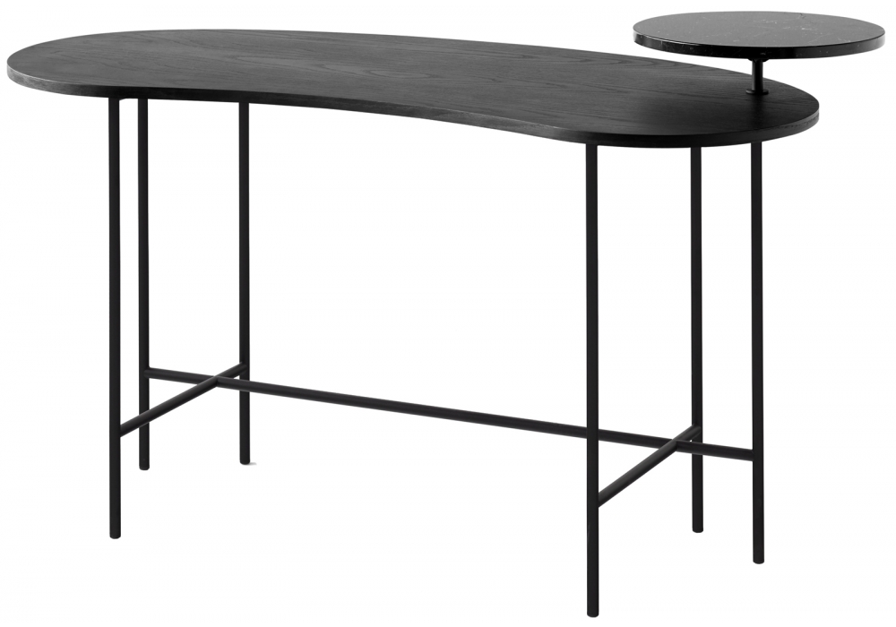 Palette JH9 diseñado por Jaime Hayon para &Tradition es un escritorio con base realizada en tubos de acero soldados y pintados en polvo. Encimeras realizadas en mármol y chapa de fresno teñido.