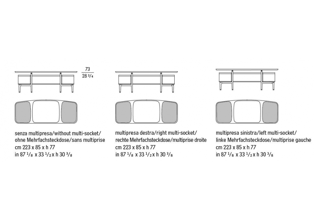 Mogul diseñado por Roberto Lazzeroni para Giorgetti es un escritorio con estructura en nogal canaletto y la superficie es disponible con el inserto central en piel y los laterales en piel o cristal templado. Es posible insertar debajo de la parte superior, a la derecha oa la izquierda, una toma de corriente múltiple predispuesta para 1 toma schuko, 1 toma RJ45 y 1 toma USB de alta velocidad.
