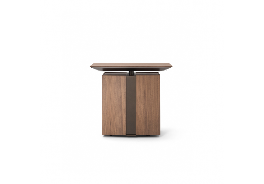 Touch Down Unit diseñada por Studio Klass para Molteni&C es una estación de trabajo realizada con tablero deslizante regulable en altura en nogal Canaletto. El cuerpo central es de metal pintado, mientras que la carcasa exterior es de plástico. Recomendamos adquirir una batería externa con salida USB-C (dimensiones máximas de la batería externa: 7 x 2,5 x 23 cm / 7,5 x 2 x 23 cm).