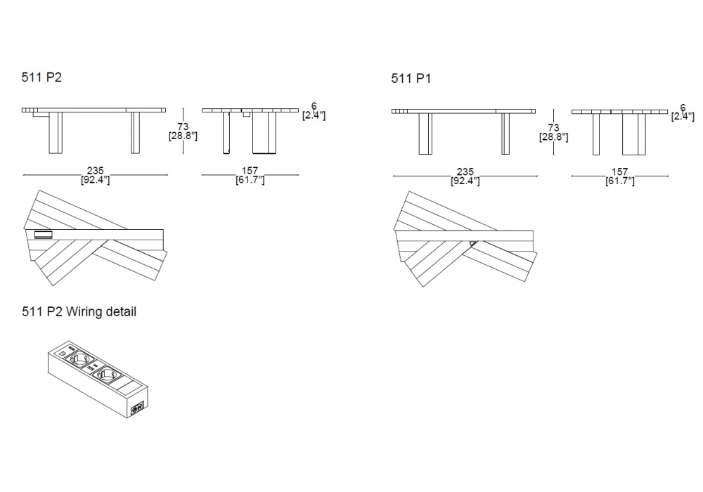 511 Ventaglio diseñado por Charlotte Perriand para Cassina es un escritorio diseñado para electrificación realizado en madera de roble natural o teñida de negro. Disponible con puerta o con orificio para cable. A petición es posible añadir un kit de cableado para multimedia.