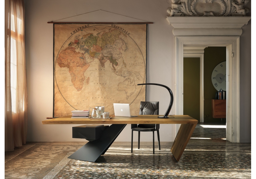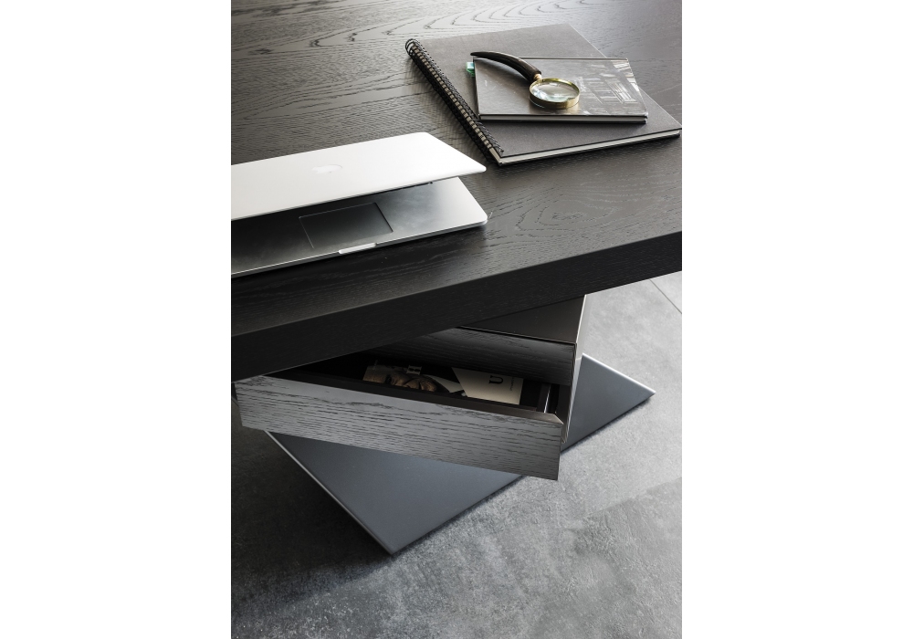 Nasdaq diseñado por Paolo Cattelan para Cattelan Italia es un escritorio con cajonera en madera disponible en los siguientes acabados: nogal Canaletto, roble Heritage y olmo negro mate de poro abierto. Pata de acero lacado gofrato graphito.