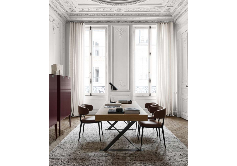 Max diseñado por Antonio Citterio para Maxalto es un escritorio con estructura de acero cromado o pintado y tablero en wengué natural o roble en diferentes acabados.