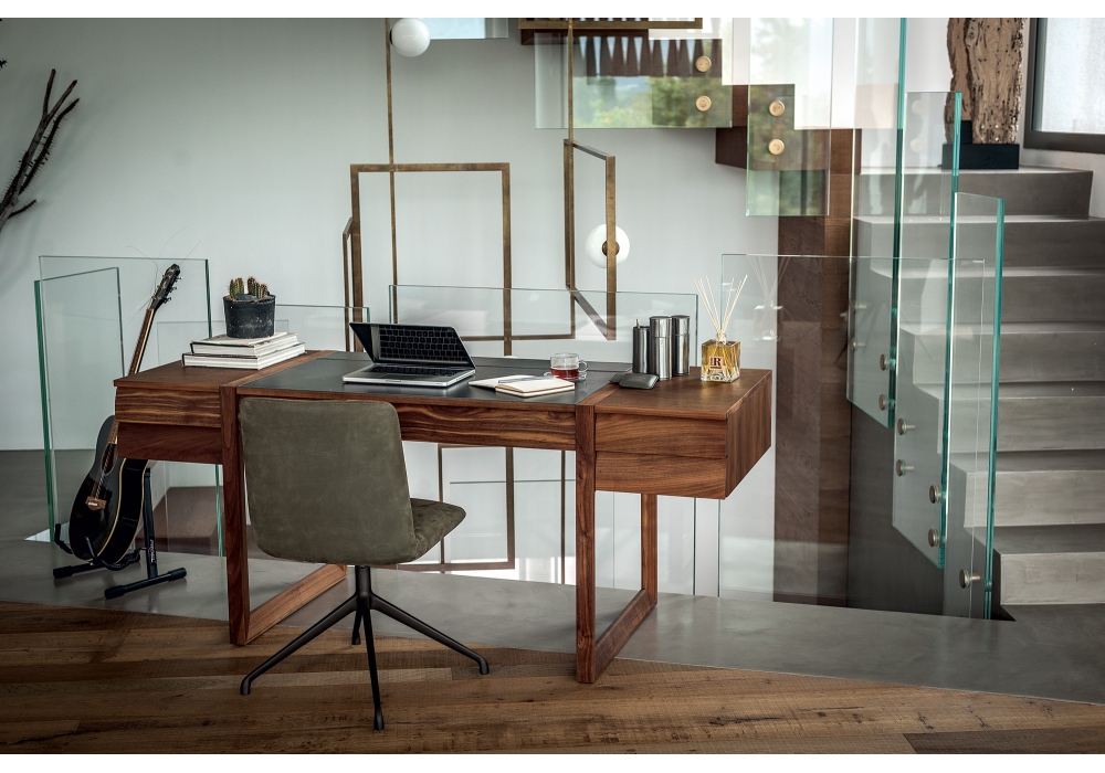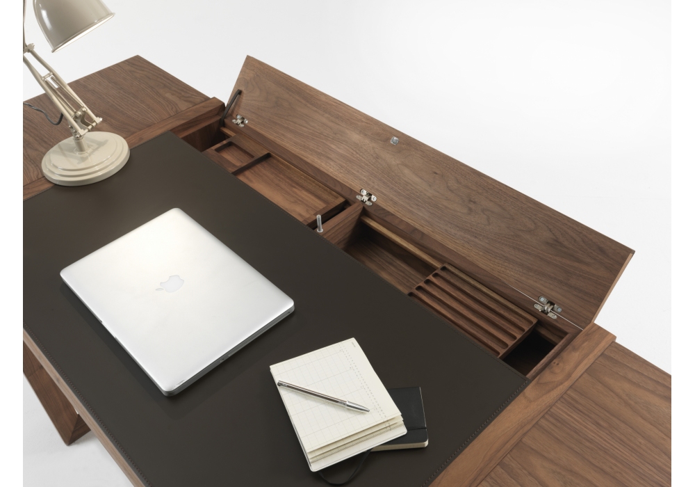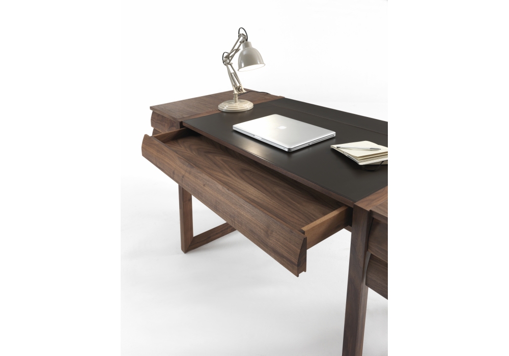 Elle Ecrit diseñado por Jamie Durie para Riva 1920 es un escritorio de líneas cuadradas realizado en tablero de madera contrachapado, con cajones ensamblados con juntas de cola de milano y patas de patín en madera maciza. Parte central de la capota revestida en piel Olimpia. Disponible en dos versiones.