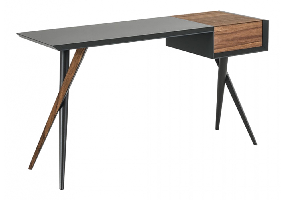 Batik diseñado por Andrea Lucatello para Cattelan Italia es un escritorio con sobre en madera barnizado gofrado blanco o graphite. Patas en acero barnizado en el mismo acabado que la parte superior. Contenedor y insertos en nogal Canaletto.
