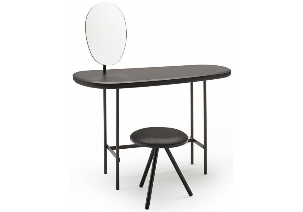 Pebble Vanity diseñado por Lanzavecchia & Wai para Living Divani es un escritorio con espejo y superficie disponible en diferentes acabados. Estructura realizada en acero, barnizado gris oscuro. También disponible en 2 modelos: con o sin cajones.