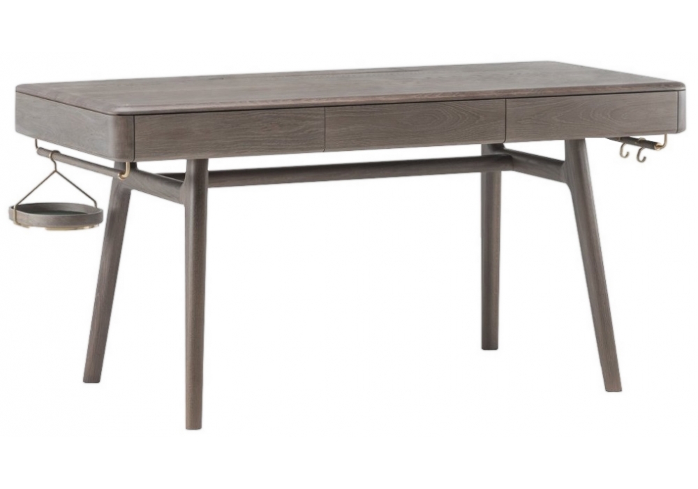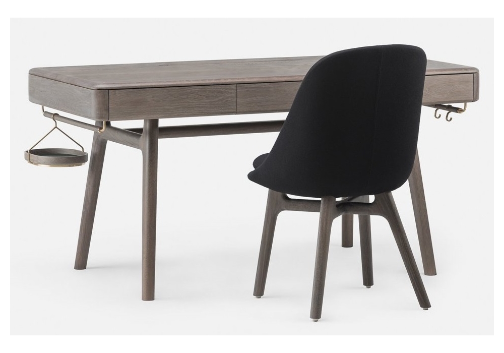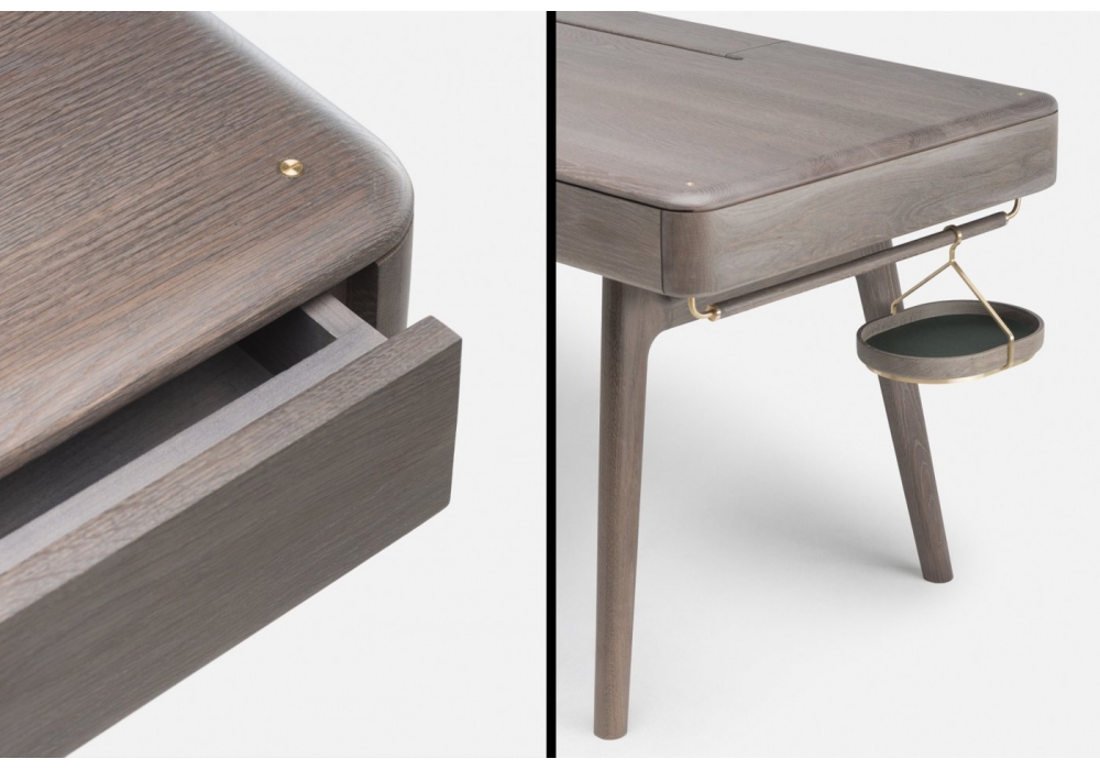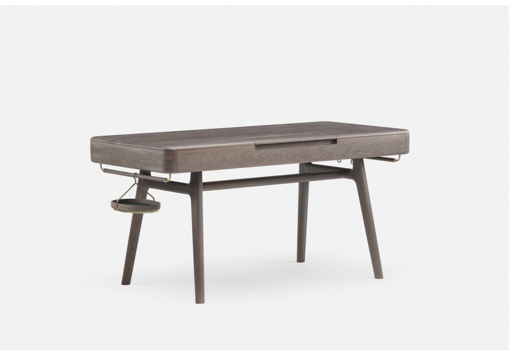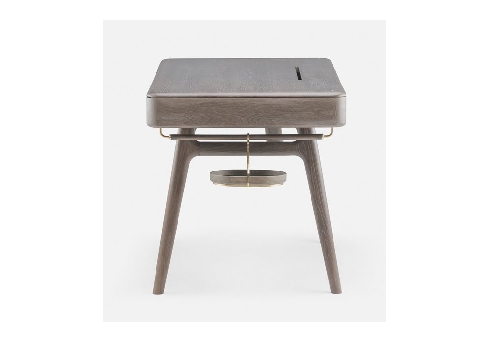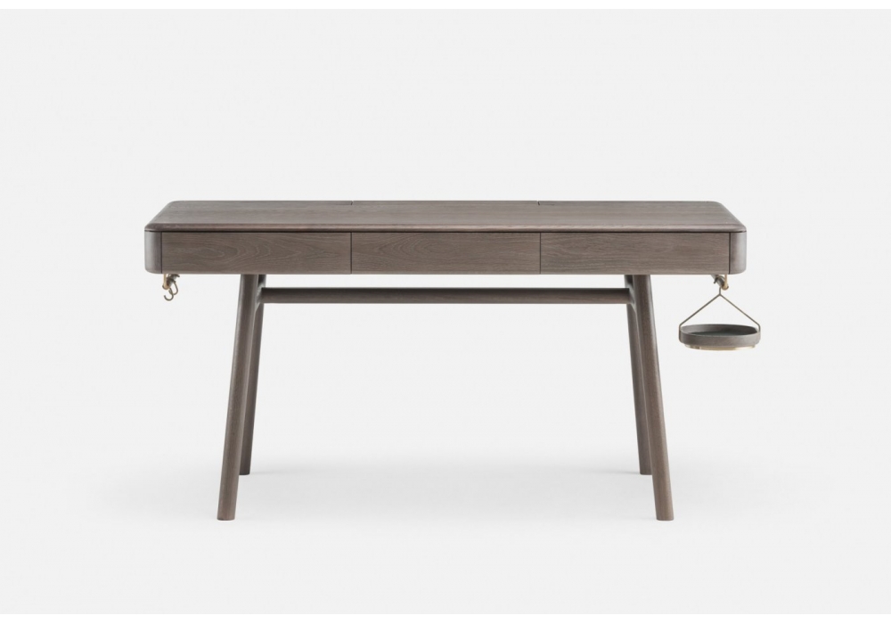 Solo diseñado por Neri & Hu para De La Espada es un escritorio en madera con 3 cajones disponible en diferentes acabados y partes metálicas en latón cepillado.