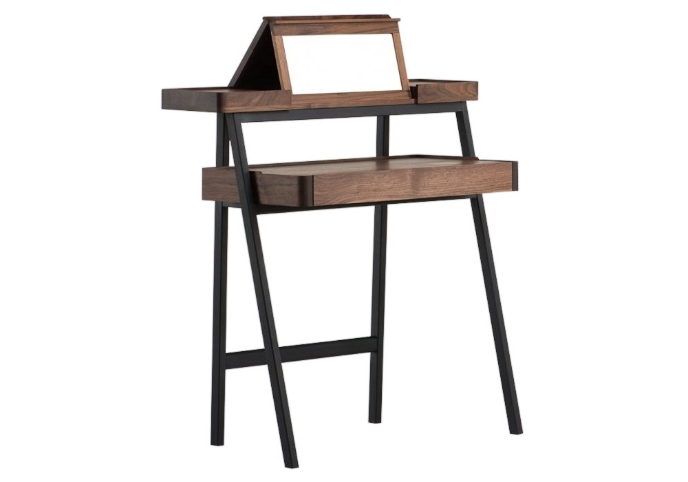 Tray diseñado por Neri & Hu para De La Espada es un escritorio en madera disponible en diferentes acabados. Tray funciona también como un tocador gracias al espejo oculto en la superficie superior de la mesa.