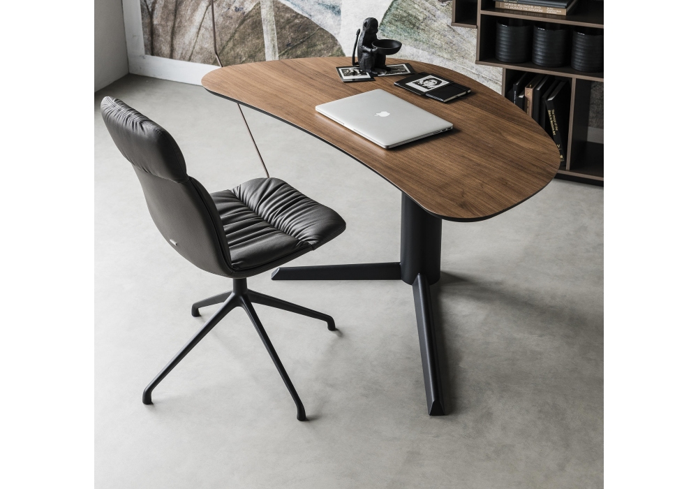 Malibù diseñado por Paolo Cattelan para Cattelan Italia es un escritorio realizado con base en acero y tapa en nogal canaletto o roble quemado.