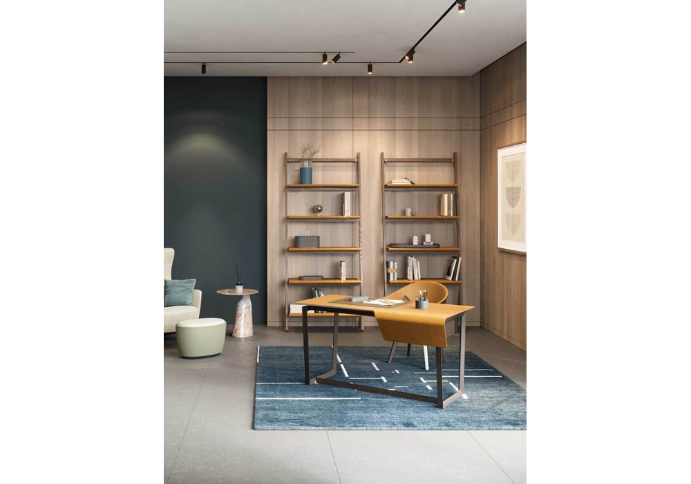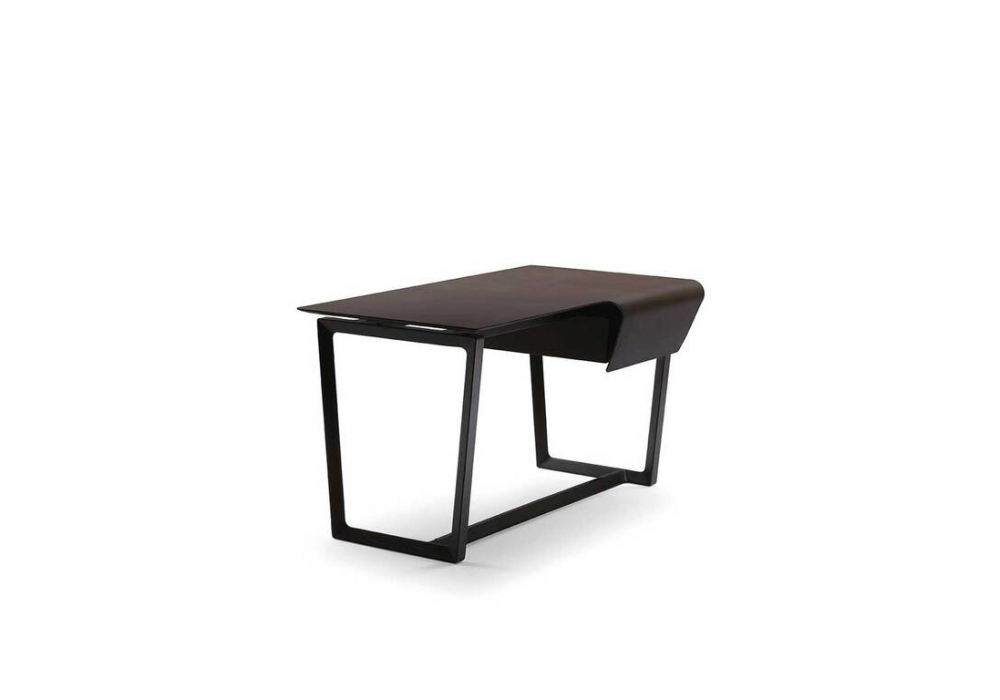 Fred diseñado por Roberto Lazzeroni para Poltrona Frau es un escritorio con una estructura de fresno macizo de sección triangular. Los herrajes metálicos tienen un acabado gris plomo y están barnizados con un barniz protector. La superficie de MDF está lacada con un barniz negro resistente a los arañazos y tapizada en piel Cuoio Saddle Extra.