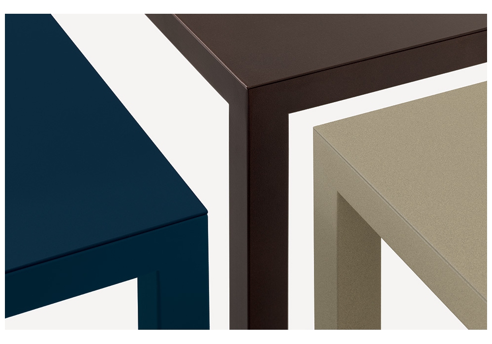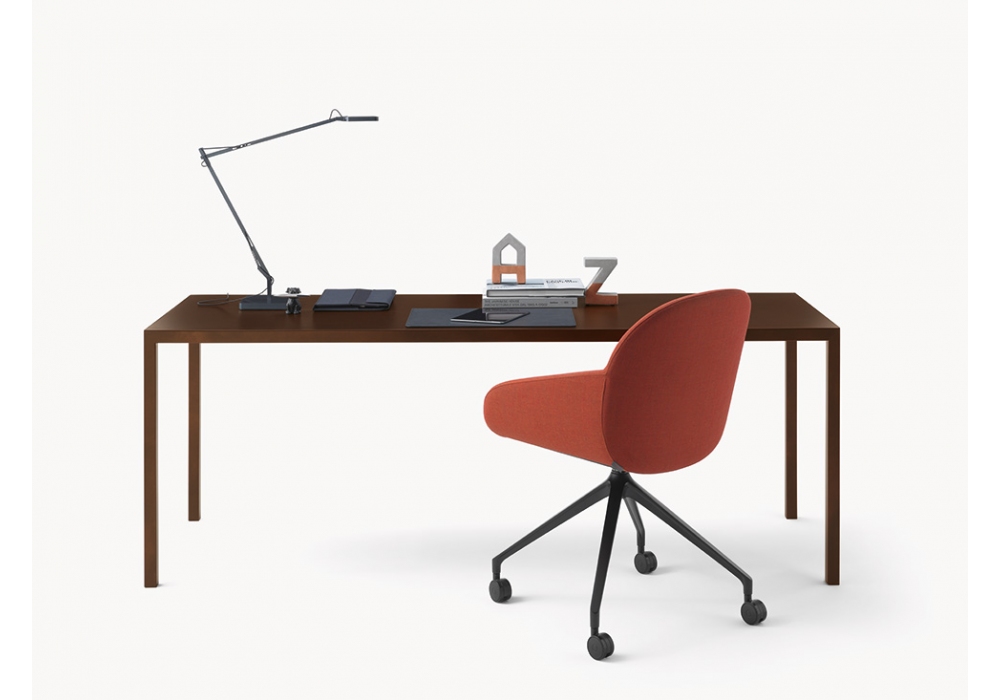 Frame Desks & Tables diseñado por Salvatore Indriolo para Fantin es un escritorio de metal compuesto por un marco de soporte en tubo cuadrado y una tapa muy fina disponible en metal o fenix. Estructura y tapa disponible en diferentes acabados y cuatro medidas.