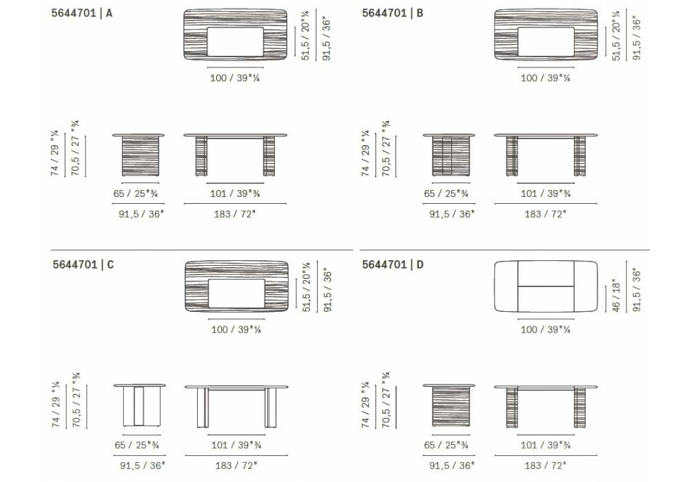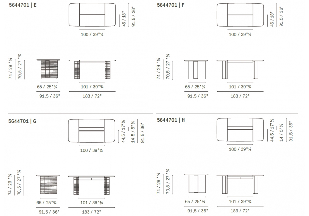 | Dimensiones | • 183 x 91,5 x H 74 cm; • 145 x 68 x H 74 cm; |