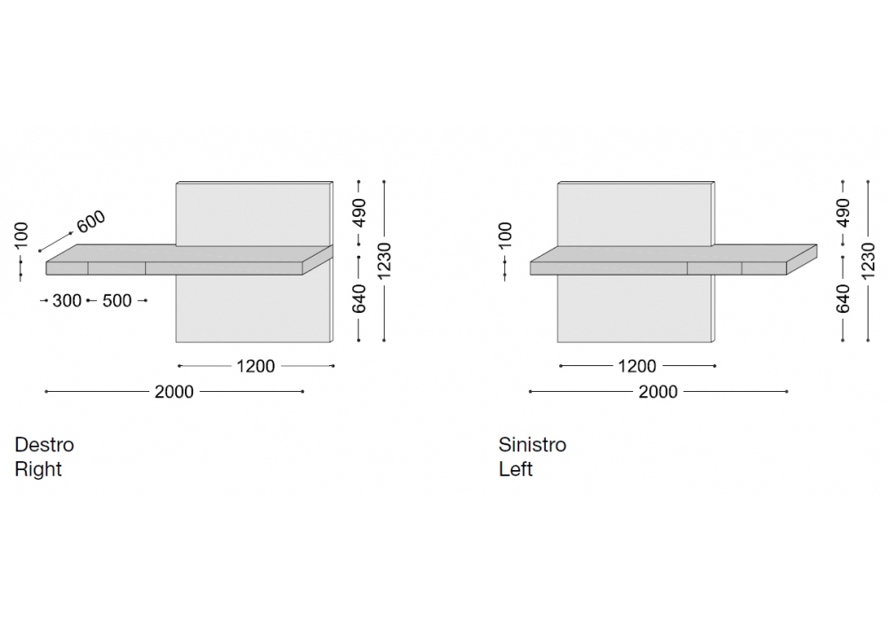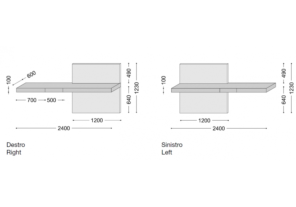 | Dimensiones | • 200 x 60 x H 64/123 cm; • 240 x 60 x H 64/123 cm |