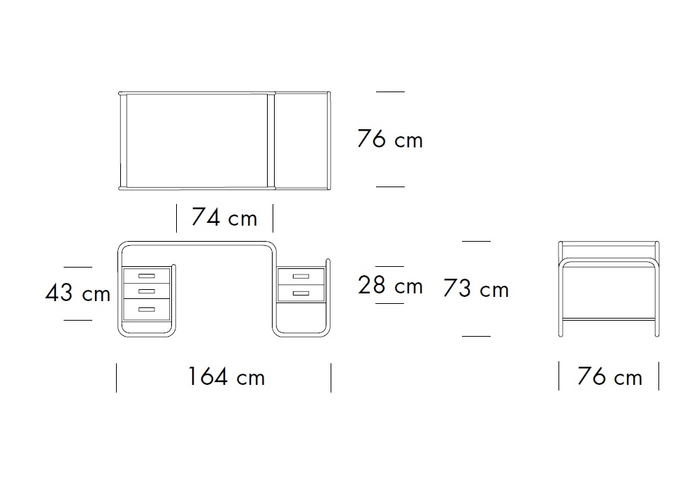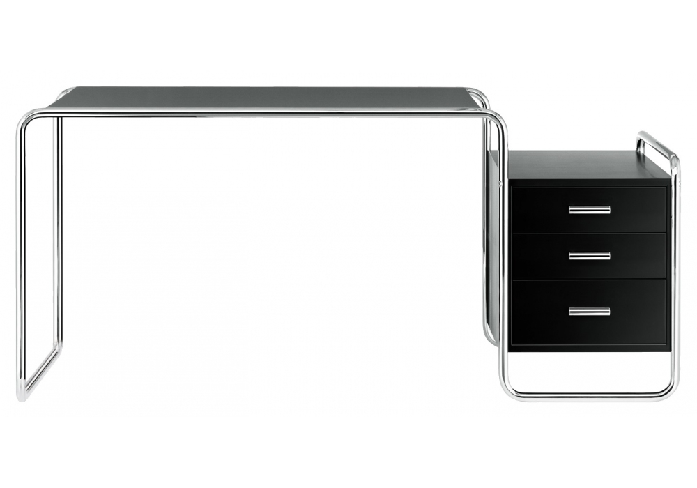 S 285 diseñado por Marcel Breuer para Thonet es un escritorio con estructura de acero tubular. Panel de aglomerado chapado en madera de fresno real o nogal en diferentes acabados. Cajones con mecanismo de extracción total y cierre amortiguado. El escritorio está disponible en diferentes versiones.