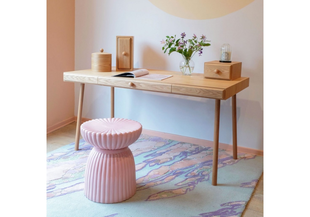 My Confidant diseñado por Thomas Dariel para Maison Dada es un escritorio con tablero de forma cuadrangular estructurado en MDF chapado en fresno pintado en diferentes acabados. Patas en metal chapado en fresno pintado en diferentes colores.