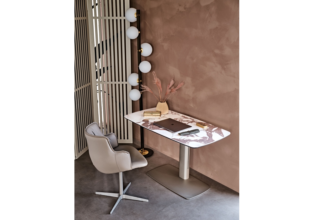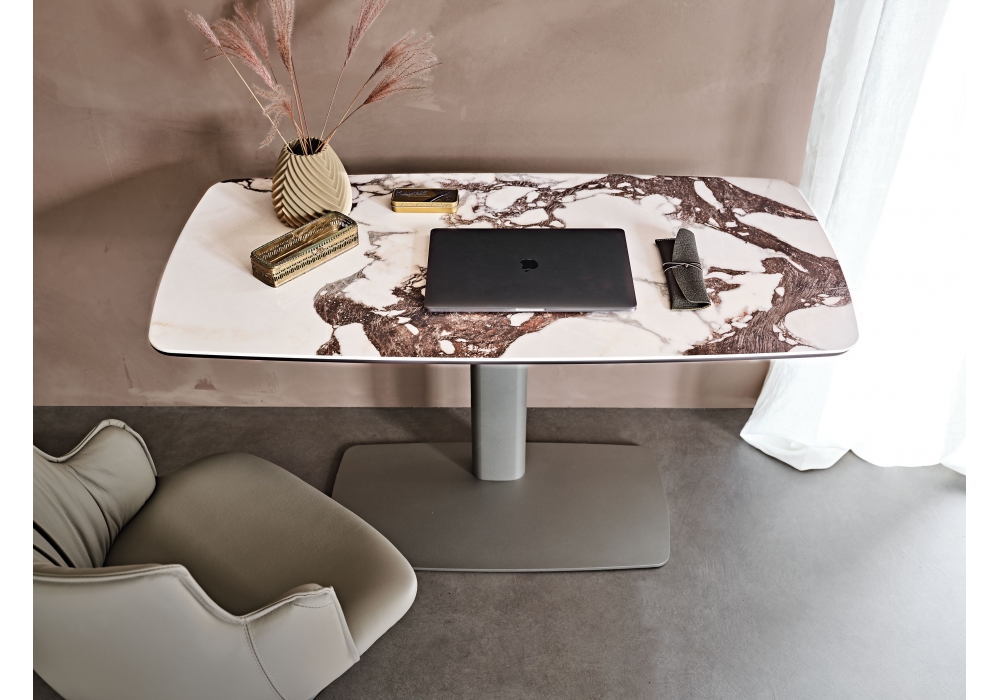Runner Keramik diseñado por Paolo Cattelan para Cattelan Italia es un escritorio con altura regulable eléctricamente. Estructura en acero lacado gofrado. Sobre en cerámica Marmi disponible en varios colores.