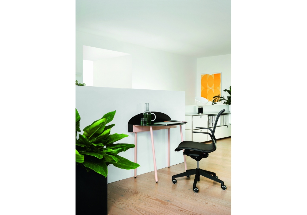 Crono diseñado por Favaretto and Partners para Luxy es un escritorio con estructura en metal pintado y tablero cortado con láser. Es posible elegir la versión con o sin kit pasacables electrificado. Disponible en diferentes acabados.