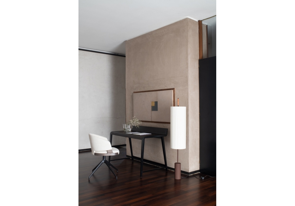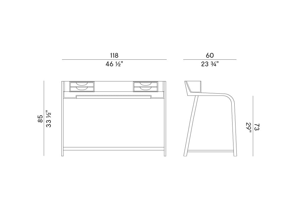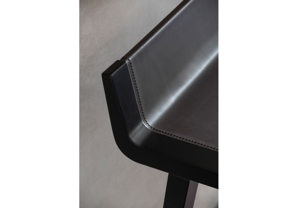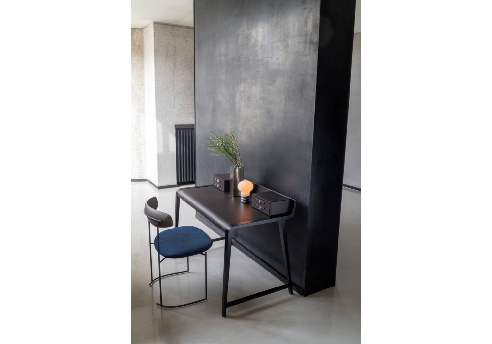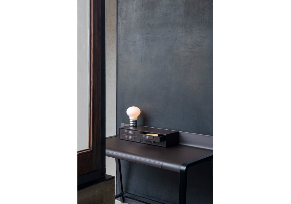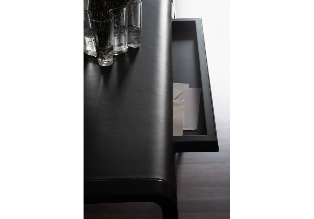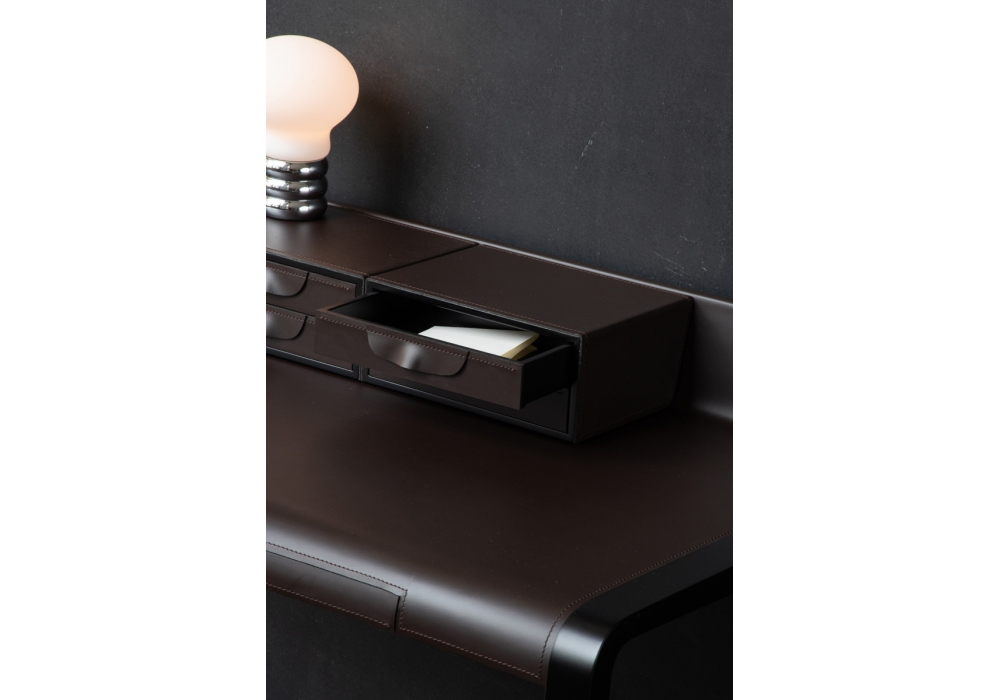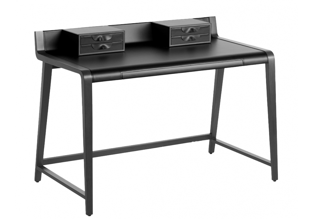 Linus diseñado por Stephan Veit para Potocco es un escritorio con estructura en haya maciza y tapa y cajones revestidos en cuero cuoietto.