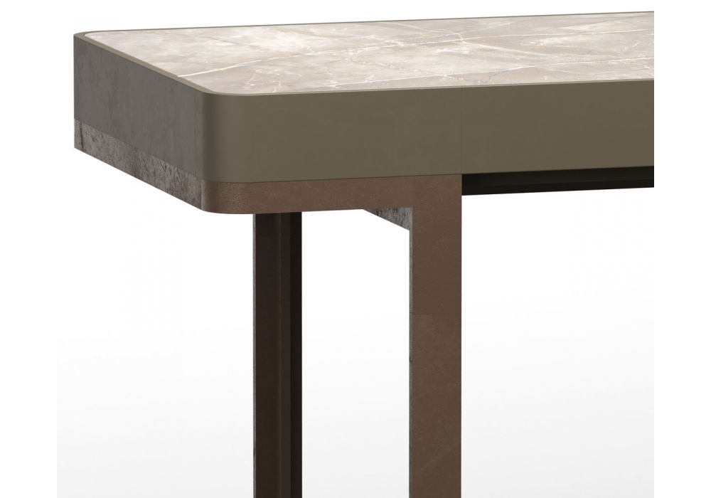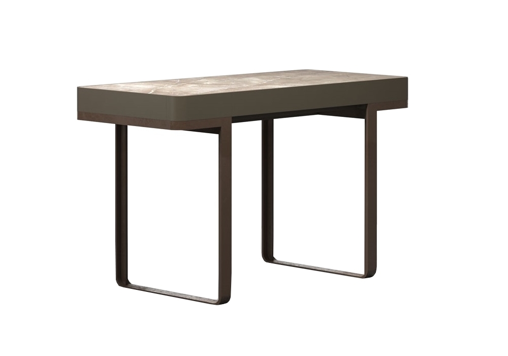 Imperio diseñado por Marco Piva para Casamania & Horm es un escritorio con una tapa independiente que se puede enriquecer con diferentes acabados preciosos, como mármol o vidrio retropintado. Un cajón central divide su simetría lateral sostenido por largas patas de metal.