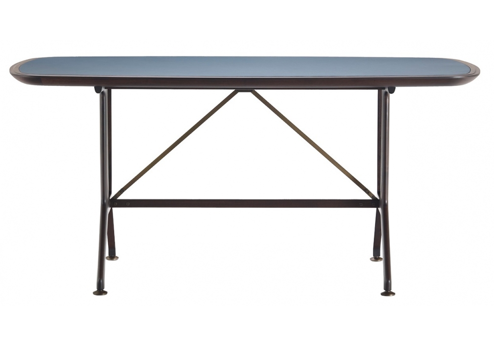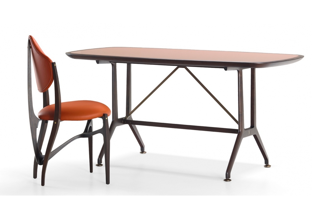 Sopwith 165 diseñado por Giuseppe Casarosa para Ceccotti Collezioni es un escritorio con estructura realizada en nogal americano macizo y contrachapado chapado. Tirantes de latón bronceado cepillado. Tapa de contrachapado, chapa de nogal americano, piel o cristal coloreado. Disponible en diferentes acabados.