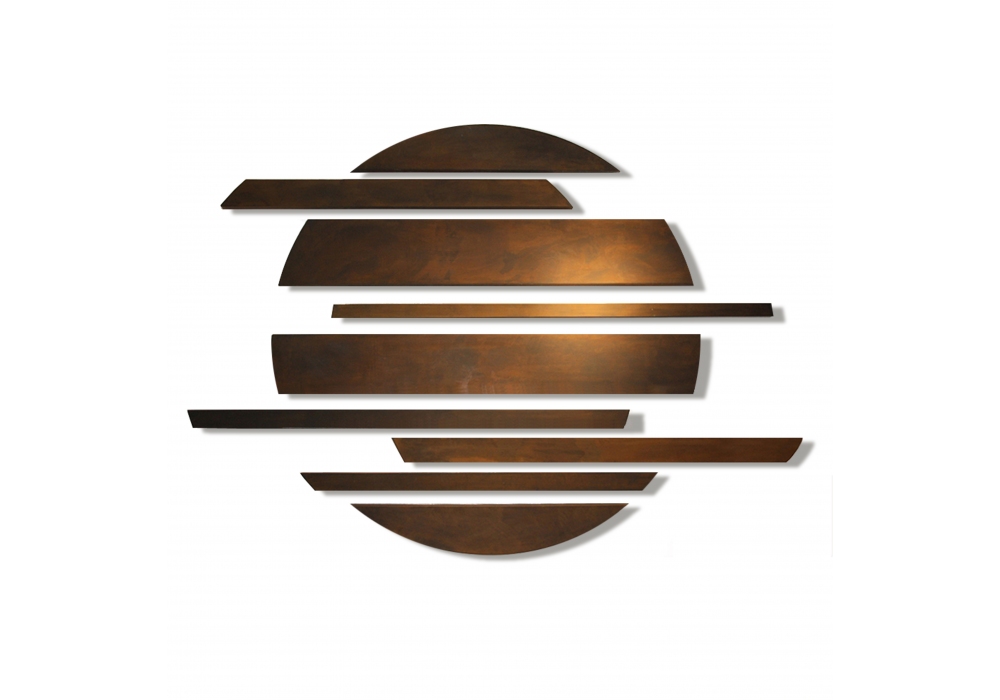 Moon Light diseñada por Faravelli & Guadalupi para FG Art and Design es una escultura de panel en hierro grabado. La luna se crea a través de la descomposición del círculo, en una serie de elementos metálicos en caja, que retoma el diseño de la luna, cuyos bordes se vuelven inciertos por la presencia de nubes. La pintura se trabaja a través de un proceso totalmente artesanal.