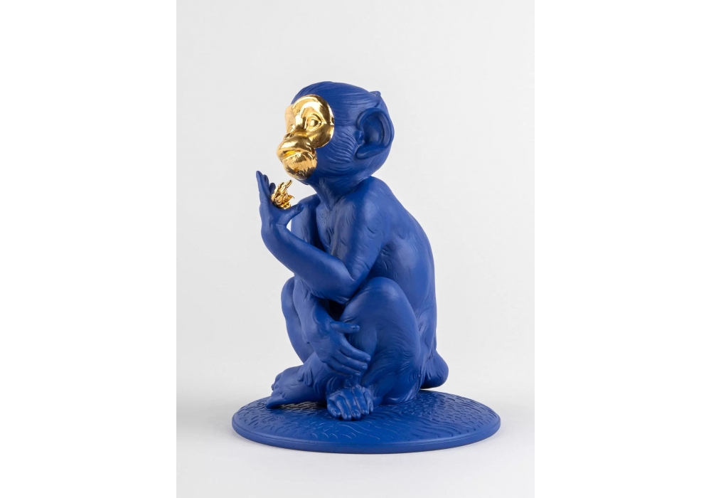 Piccola Scimmia diseñada por Virginia González para Lladró es una escultura de porcelana en acabado azul y dorado, íntegramente realizada y pintada a mano por los artistas de Lladró. Piccola Scimmia es una escultura de edición limitada.