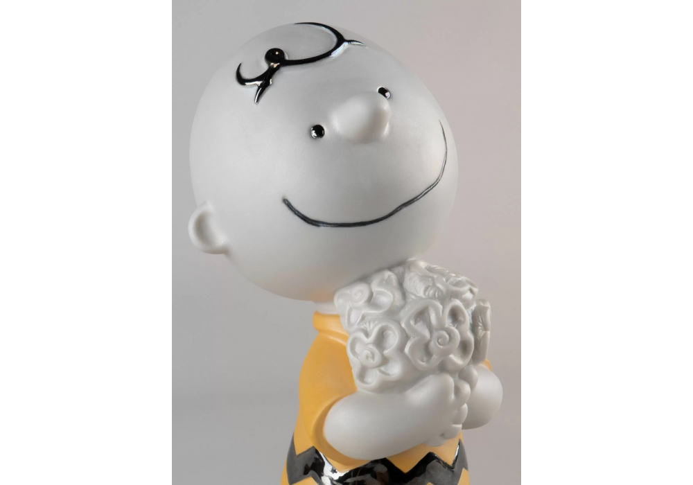 Charlie Brown esculpido por Eva Maria Cuerva para Lladró es una escultura de porcelana mate y brillo, realizada íntegramente y pintada a mano por los artistas de Lladró.