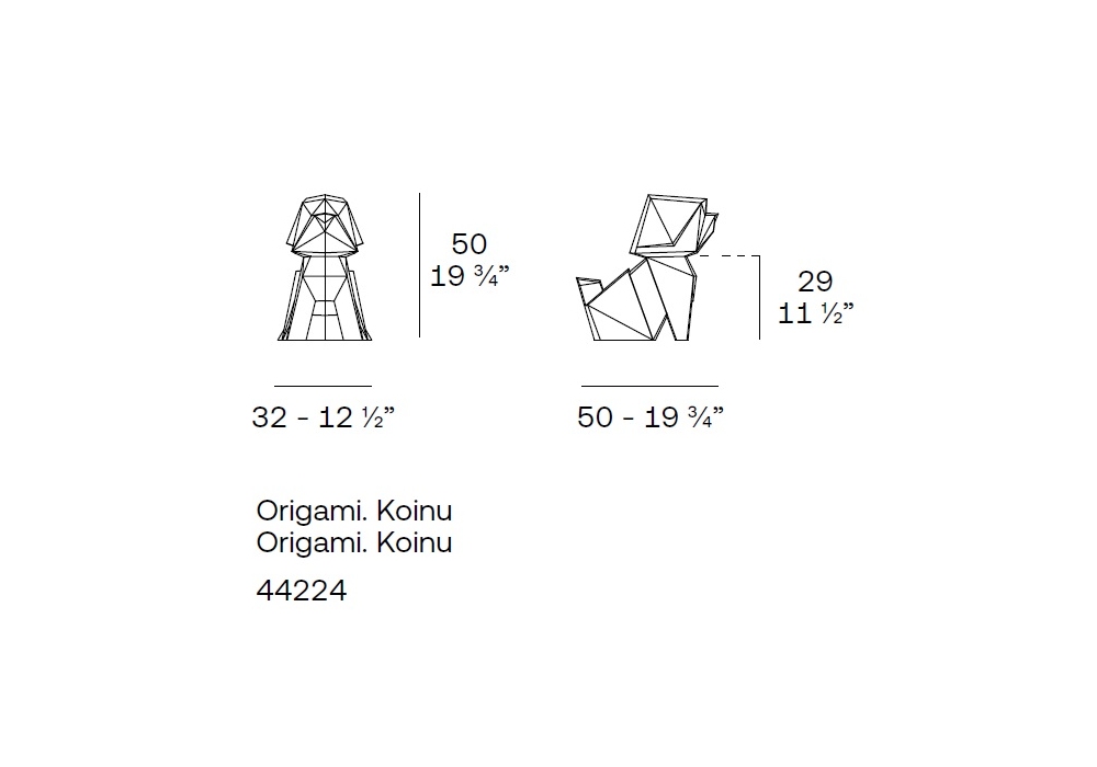 Origami Koinu diseñada por Studio Vondom es una escultura realizada en polietileno con acabado mate o lacado o con iluminación LED interna. Disponible en diferentes acabados.