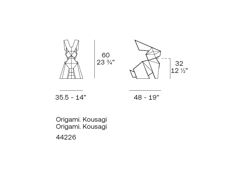 Origami Kousagi diseñada por Studio Vondom es una escultura realizada en polietileno con acabado mate o lacado o con iluminación LED interna. Disponible en diferentes acabados.
