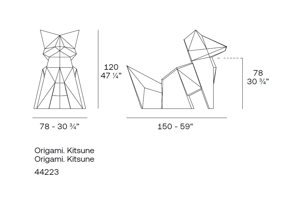 Origami Kitsune diseñada por Studio Vondom es una escultura realizada en polietileno con acabado mate o lacado o con iluminación LED interna. Disponible en diferentes acabados.