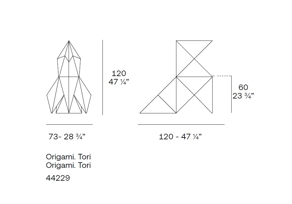Origami Tori diseñada por Studio Vondom es una escultura realizada en polietileno con acabado mate o lacado o con iluminación LED interna. Disponible en diferentes acabados.