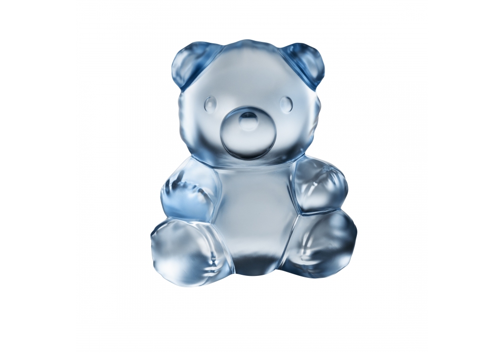 Teddy Air diseñada por Lalique es una escultura realizada en cristal transparente, rosa o azul brillante.