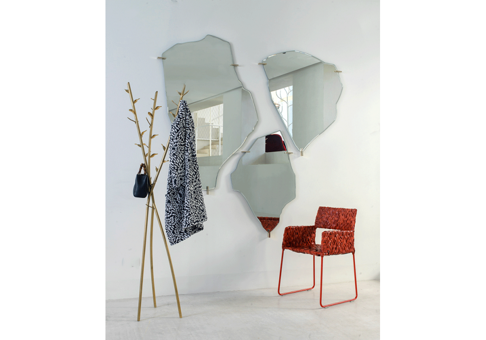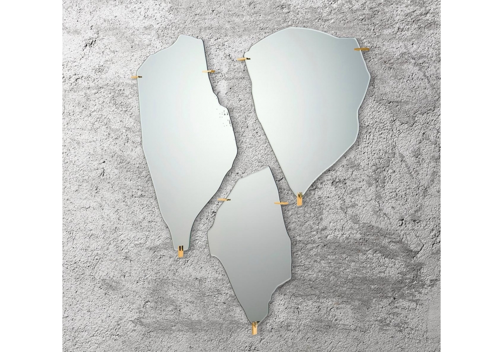 Arcipelago diseñado por Fredrikson Stallard para Driade es un espejo realizado con corte CNC, bisel, placa de acero pintado y película anti-rotura. Elementos decorativos en acero con acabado galvánico en color dorado. Solo para uso interno. Disponible en diferentes tamaños.