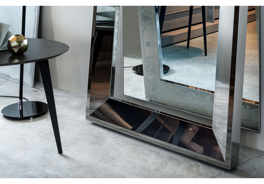 Vanity diseñado por Alessandro Dubini para Lema es un espejo con marco de acero pulido.