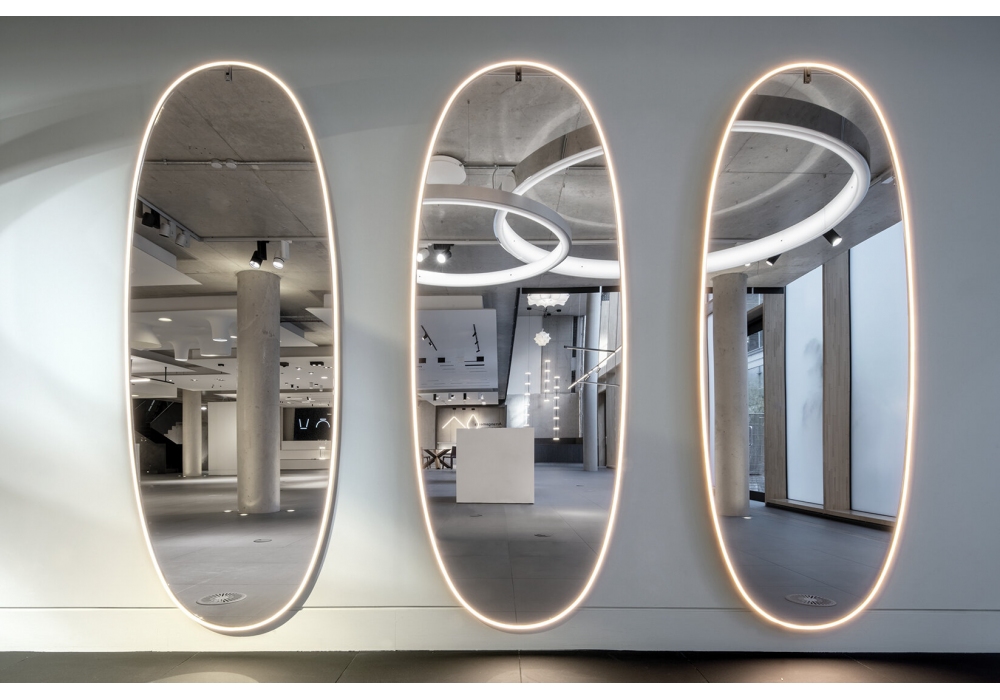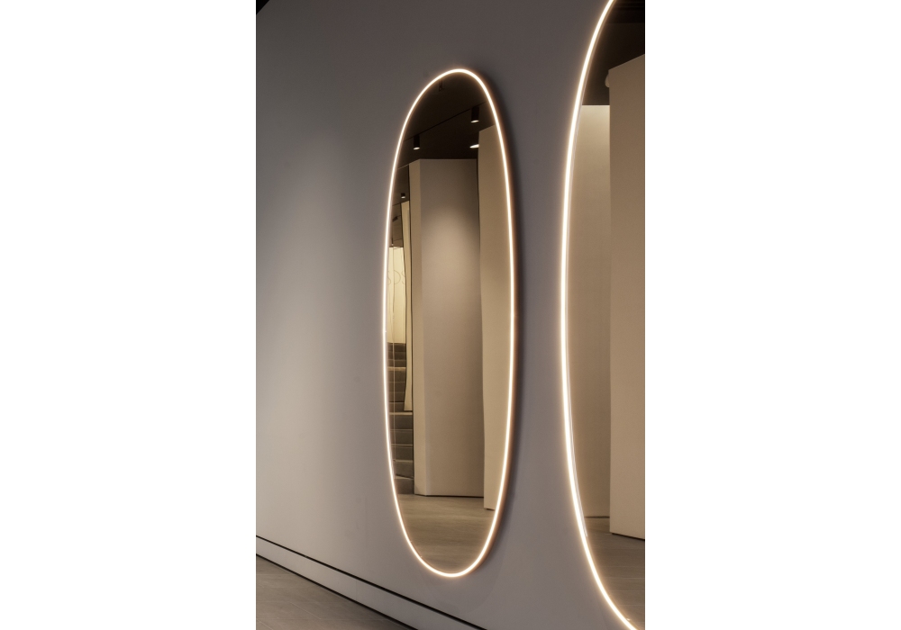 La Plus Belle diseñado por Philippe Starck para Flos es un espejo de pared elíptico con estructura de aluminio disponible en diferentes acabados. Incluye regulador de intensidad y fuente de luz LED.