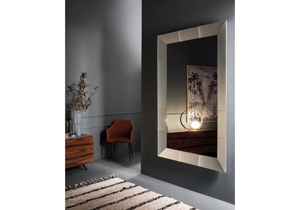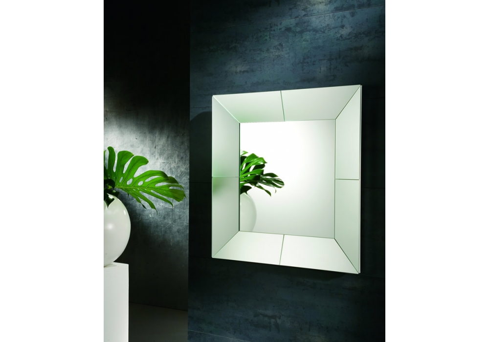 Iceberg diseñado por Riflessi es un espejo realizado con un marco inclinado en vidrio plateado satinado. Disponible en diferentes dimensiones.