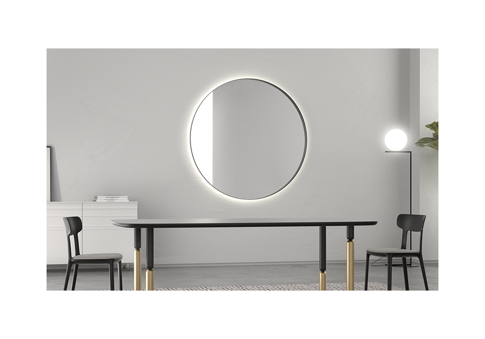 Full Moon diseñado por DSH para Minotti Italia es un gran espejo circular de metal, disponible en dos medidas y en diferentes acabados, también disponible en pan de oro o plata. Posibilidad de añadir el kit de iluminación LED.