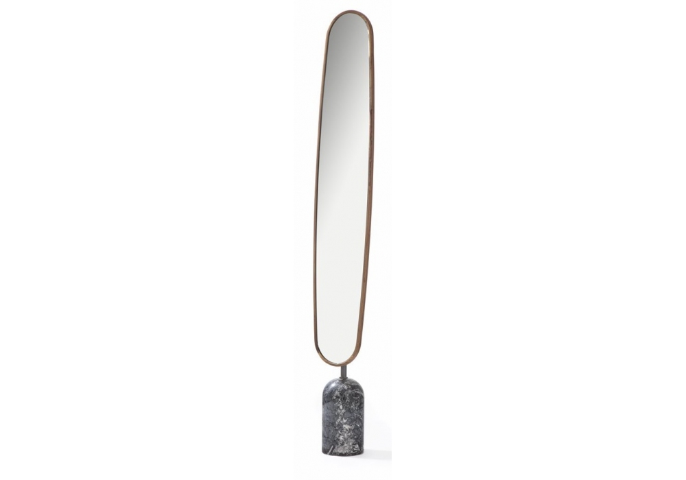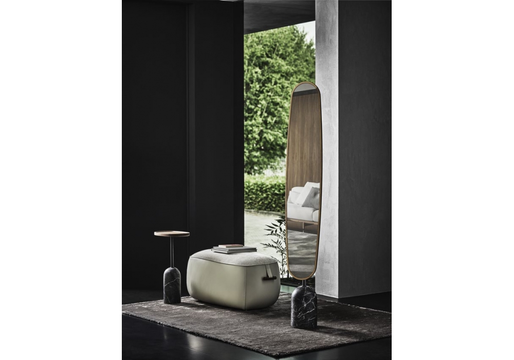 Ekero diseñado por Tollgard & Castellani para Porada es un espejo realizado con base cilíndrica en mármol, vástago central en metal pintado y marco en nogal canaletta macizo.