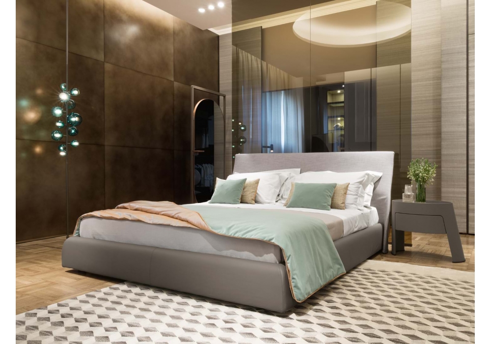 Narcisse diseñado por DESIGN MVW para Giorgetti es un espejo vertical con estructura y base en metal pintado bronce. El marco, la bandeja del espejo y la de la base son de paneles de madera, enchapado y nogal canaletto macizo.