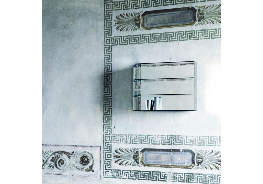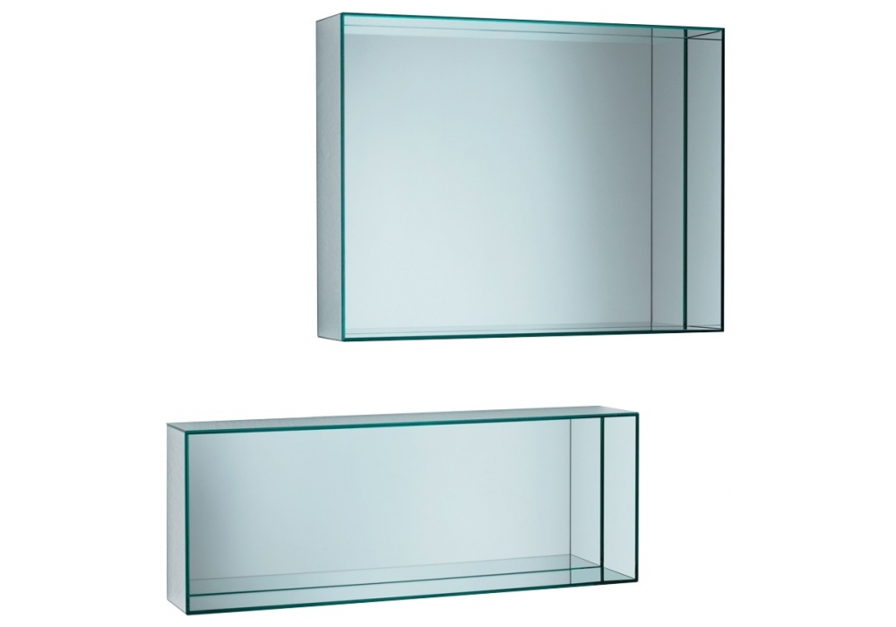 Mirror Mirror diseñado por Jasper Morrison para Glas Italia es un espejo disponible en diferentes tamaños, realizado mediante el encolado de placas de espejo laminadas de doble cara a 45 °. También están disponibles dos tamaños con estantes de vidrio transparente, termosellados al espejo. Todos los modelos están equipados con conexiones dobles verticales y horizontales.