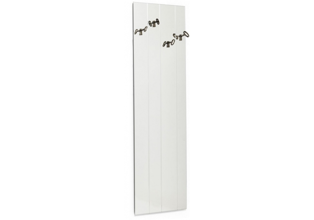 Memorie diseñado por Luca Somaini para Mogg es un espejo de pared con 4 llaves perchero en latón fundido con acabado en níquel negro brillante.